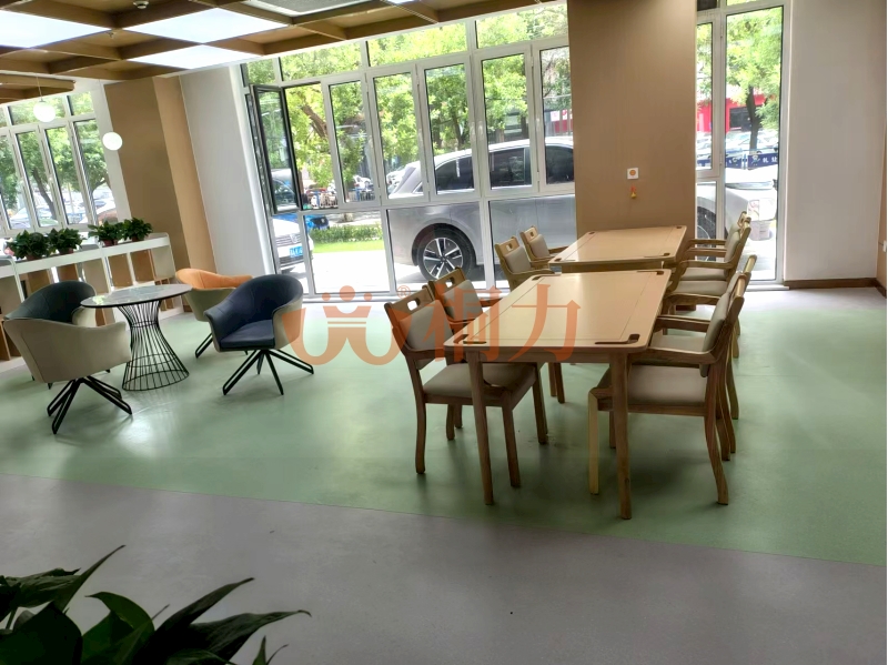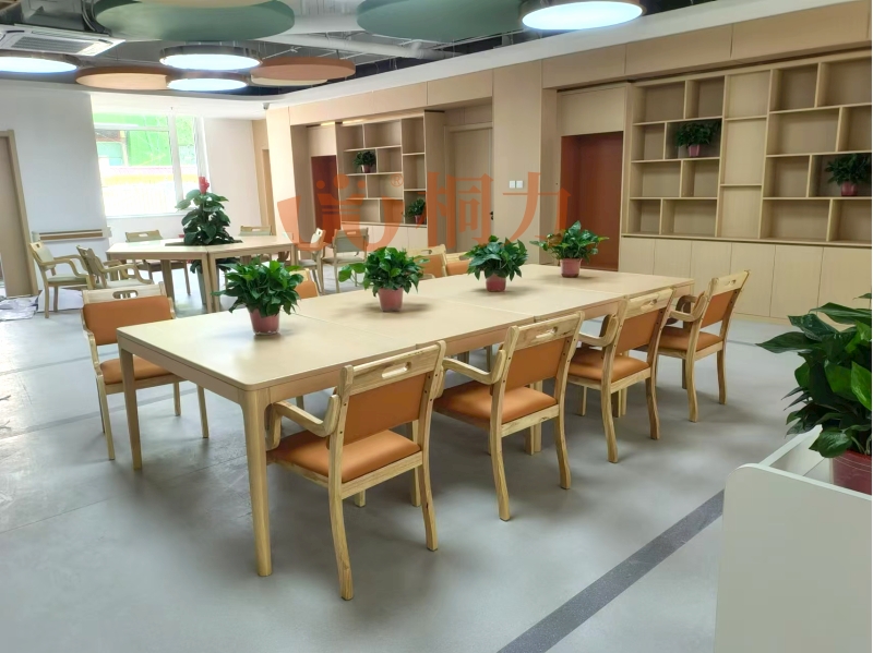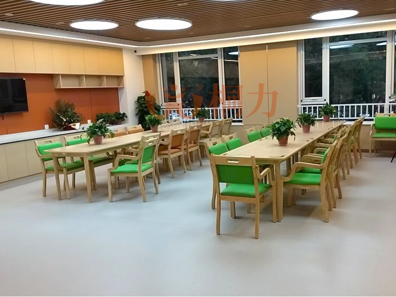 大廳(tīng):配置有服務台,台麵高度70-85厘米,輪椅老人也能輕鬆趴著(zhe)辦手續,台麵下留空方(fāng)便腿腳伸展。地麵鋪防滑材料,下雨天也不怕打滑(huá),有的適老桌還帶(dài)排水(shuǐ)槽,水(shuǐ)漬快速流走;沙發兩邊有實木扶手,起身時能抓著借力,坐墊(diàn)偏硬不塌陷,老人坐久了也(yě)不累。