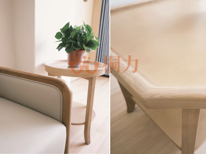 套房客廳:適老(lǎo)化沙發(fā)墊子不能像懶人沙發(fā)那(nà)樣陷進去,高密度海(hǎi)綿坐(zuò)下去有支撐,腰不會酸。兩邊要有實木扶(fú)手,抓牢了能輕鬆站起來,麵料(liào)用防水(shuǐ)防汙的,撒了茶水一擦就幹淨。坐麵離地45厘米左右,站起坐下不吃(chī)力。適老(lǎo)化茶(chá)幾圓角防(fáng)撞設計:邊角倒圓,避免磕碰傷害。台(tái)麵比沙發坐墊高(gāo)5厘米,伸手拿水杯(bēi)不(bú)用彎(wān)腰,邊緣帶擋水條,倒水時不小(xiǎo)心灑了,水會被凸起的邊沿攔住,不會流到(dào)身上或地上(shàng)造成滑倒傷害。
