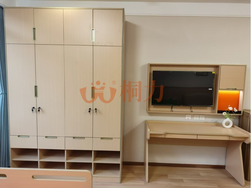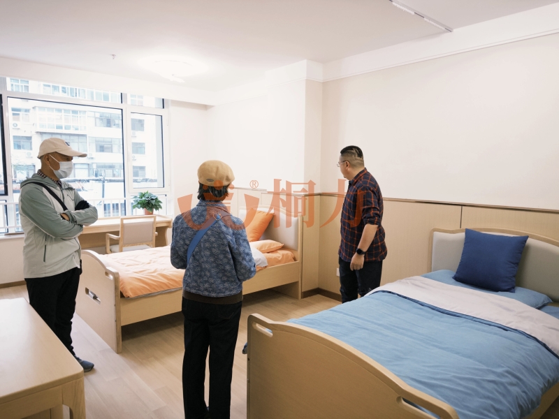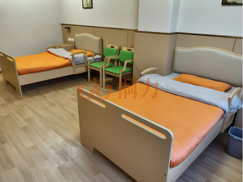 介(jiè)護(hù)型房間:護理床能升降,吃飯時調成靠背模式,帶護欄防止翻身掉下來,床墊軟硬適中不硌得慌。床(chuáng)頭櫃櫃麵帶擋(dǎng)板防止東西滑落(luò),下層抽屜方便放置物品。步入式衣櫃掛衣(yī)杆能拉下來,坐(zuò)輪椅(yǐ)也(yě)夠得到,櫃門裝阻尼鉸鏈,開關門(mén)慢慢合上(shàng)不(bú)撞手。感應小(xiǎo)夜燈,晚上起夜(yè)不用摸開關,人走過自動亮燈,光線柔(róu)和不起夜眩光。床邊有緊(jǐn)急呼叫器,有什麽需求一鍵呼護(hù)理人員。